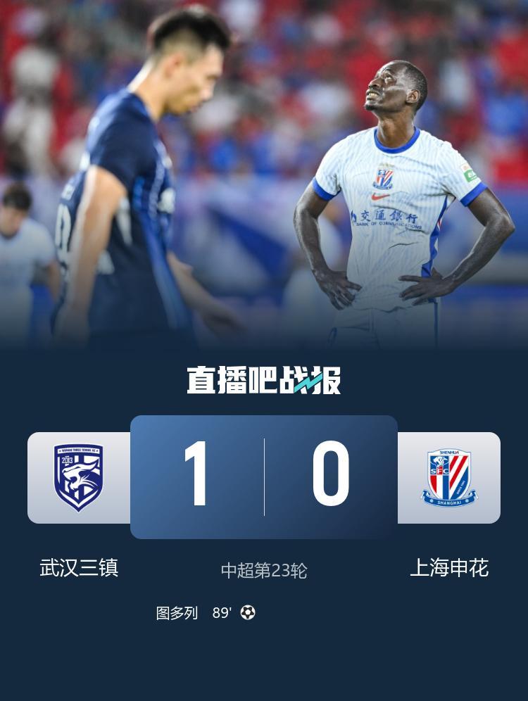 直播吧8月31日讯 北京时间19:00,中超第23轮武汉三镇vs上海申花,比赛在武汉体育中心体育场打响!上半场,阿苏埃开场闪击破门,但因手球被判无效!邓涵文击中横梁。下半场,图多列替补登场,89分钟绝杀!最终,上海申花0-1不敌武汉三镇,三镇取得近9轮的第一场胜利。