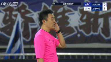 第71分钟,于汉超禁区内左侧倒地,主裁判听取VAR意见,没有判罚点球↓