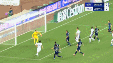 第23分钟,武汉三镇快速反击,王毅左路下底传中,后点邓涵文小角度射门击中横梁↓