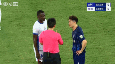 第15分钟,双方争顶相撞倒地,邓涵文与对手发生冲突,随后阿苏埃手推邓涵文,两人各吃一张黄牌↓