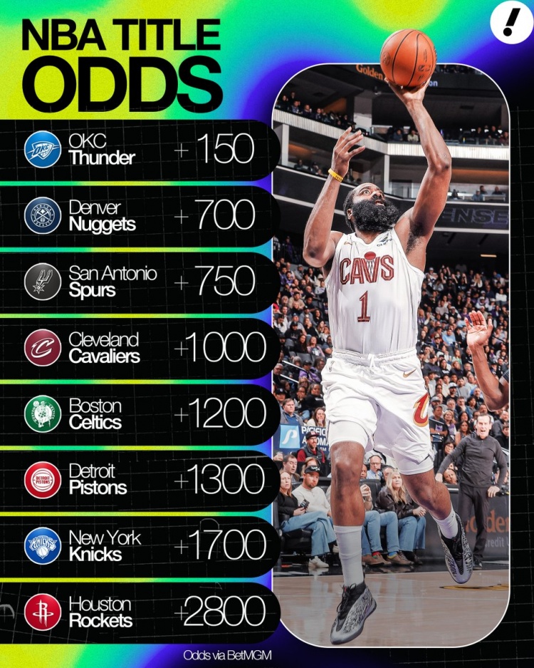 世俱杯下注世俱杯官网-夺冠赔率:雷霆+150第1 掘金2&马刺3 骑士+1000第4 火箭+2800第8